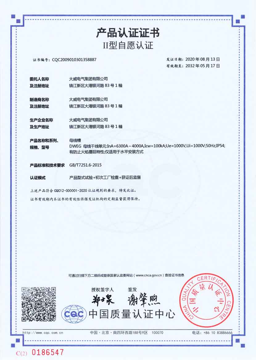 母线槽CQC证书