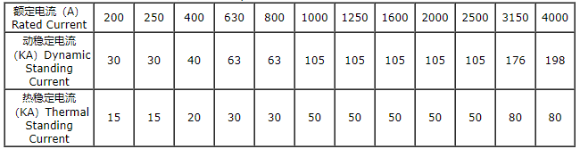 4、母线槽根据下表的数据通过动、热稳定试验,且试验后母线呈无可觉察的永久变形。