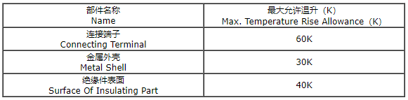 2、母线槽在长期通额定电流时,其导电部位的温升不超过下表所列数值: