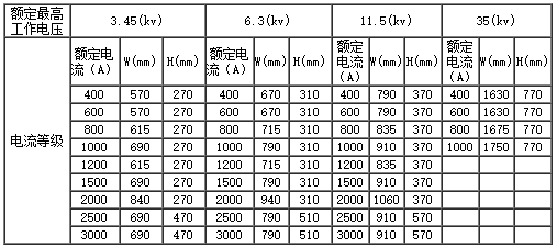 4、额定电流:3.45KV~11.5KV 400A~3000A; 40.5KV 100A~1000A。